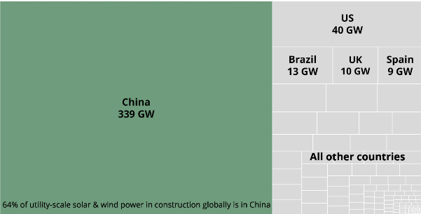 Utility-scale solar and wind capacity by country updated June 2024 for China and Europe, other regions accurate to December 2023. Source: Global Solar Power Tracker, Global Wind Power Tracker, Global Energy Monitor